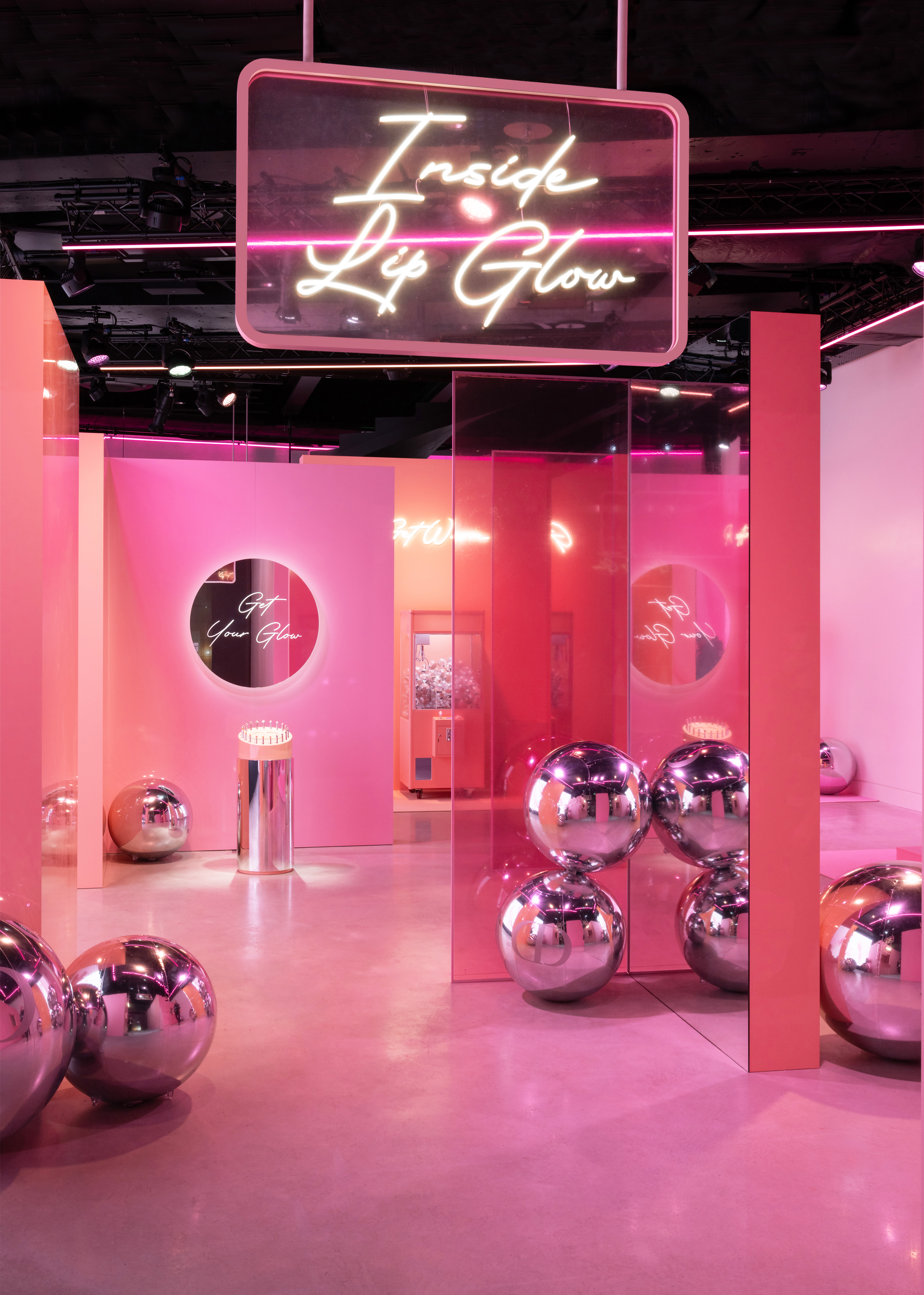 Enter the Lip Glow is an immersive event held at Below the Lights in Piccadilly Circus, celebrating the launch of Addict Lip Glow. The space featured interactive installations, playful games, and hands-on beauty experiences within an all pink, mirrored scenography. Guests moved through themed rooms designed to reflect colour, texture, and light.
