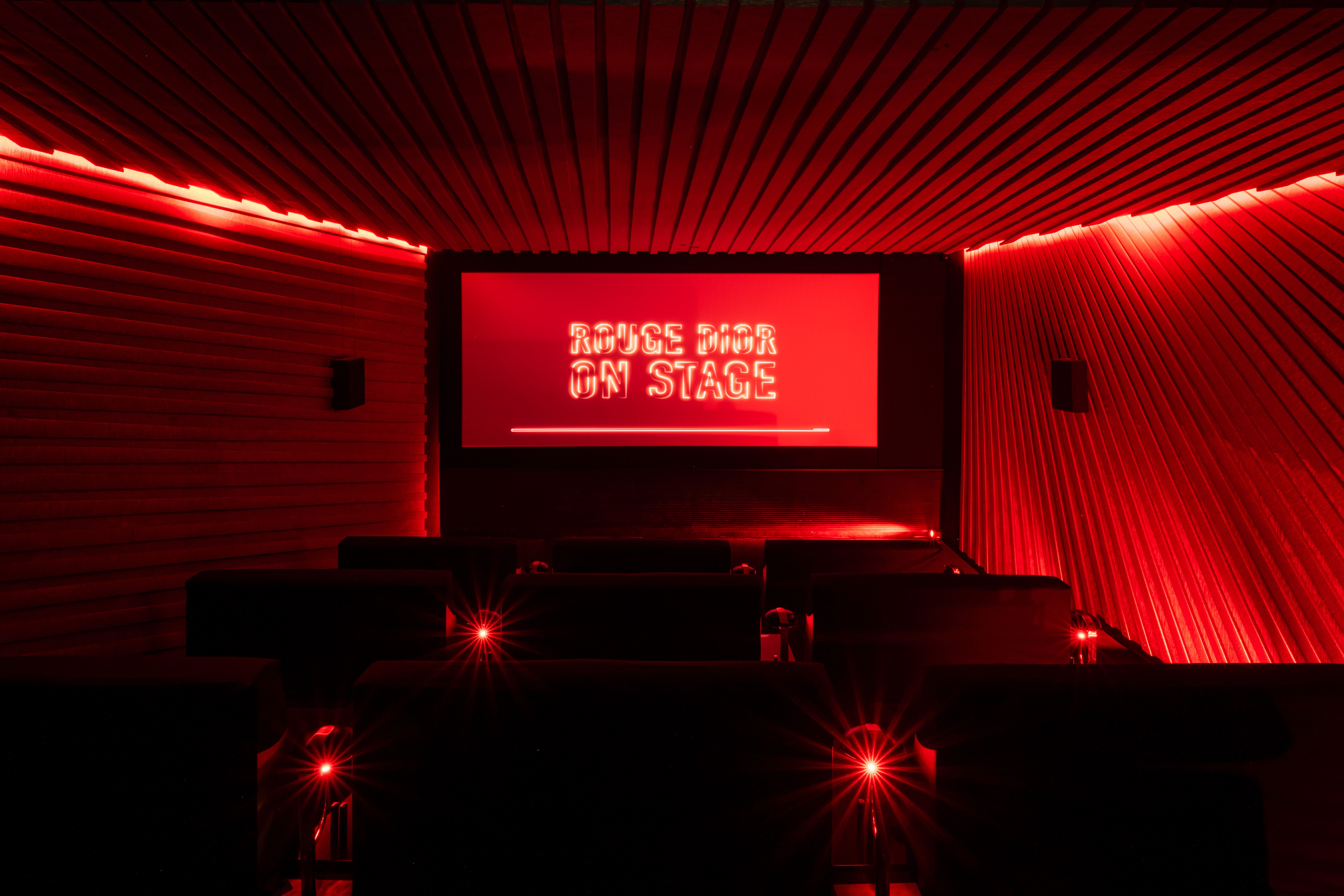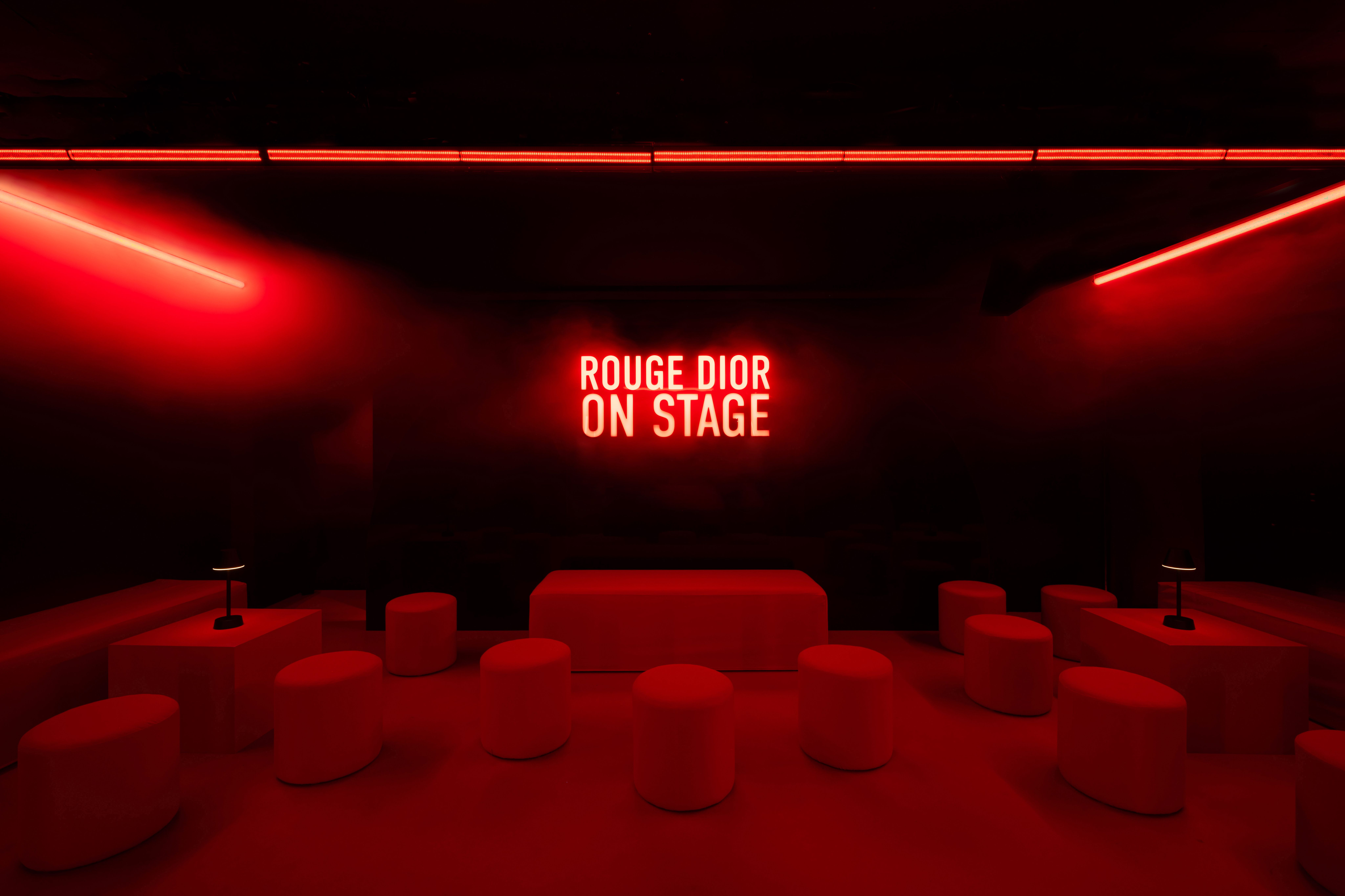 Rouge Dior On Stage is an immersive launch event at Silencio Club in Paris. The iconic venue was transformed into a cinematic environment with red-and-black scenography, neon installations and a private screening room. Guests moved through spaces blending performance, music, and visual storytelling to reflect the new lipstick collection.