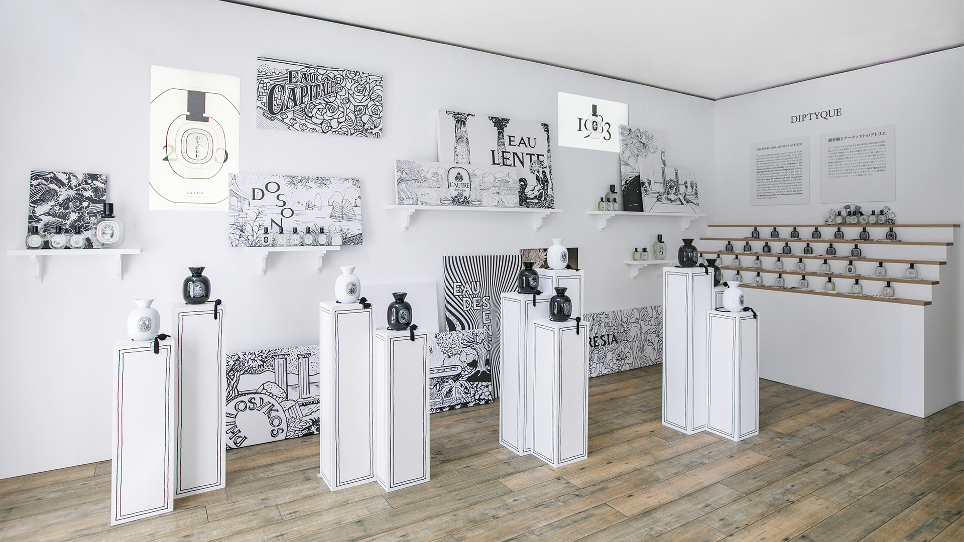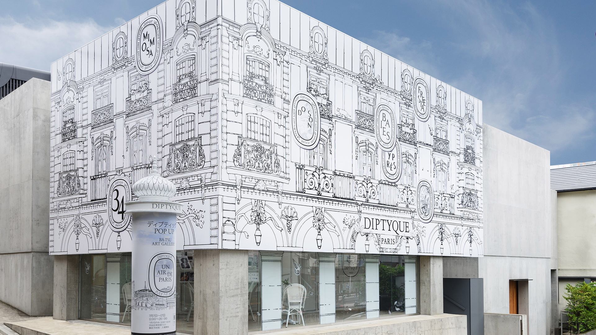 Un Air de Paris is an immersive pop-up in Tokyo. Visitors were invited on a multisensory journey through Diptyque’s poetic Parisian art de vivre, moving from fragrant gardens to creative ateliers and a refreshing glacier.
